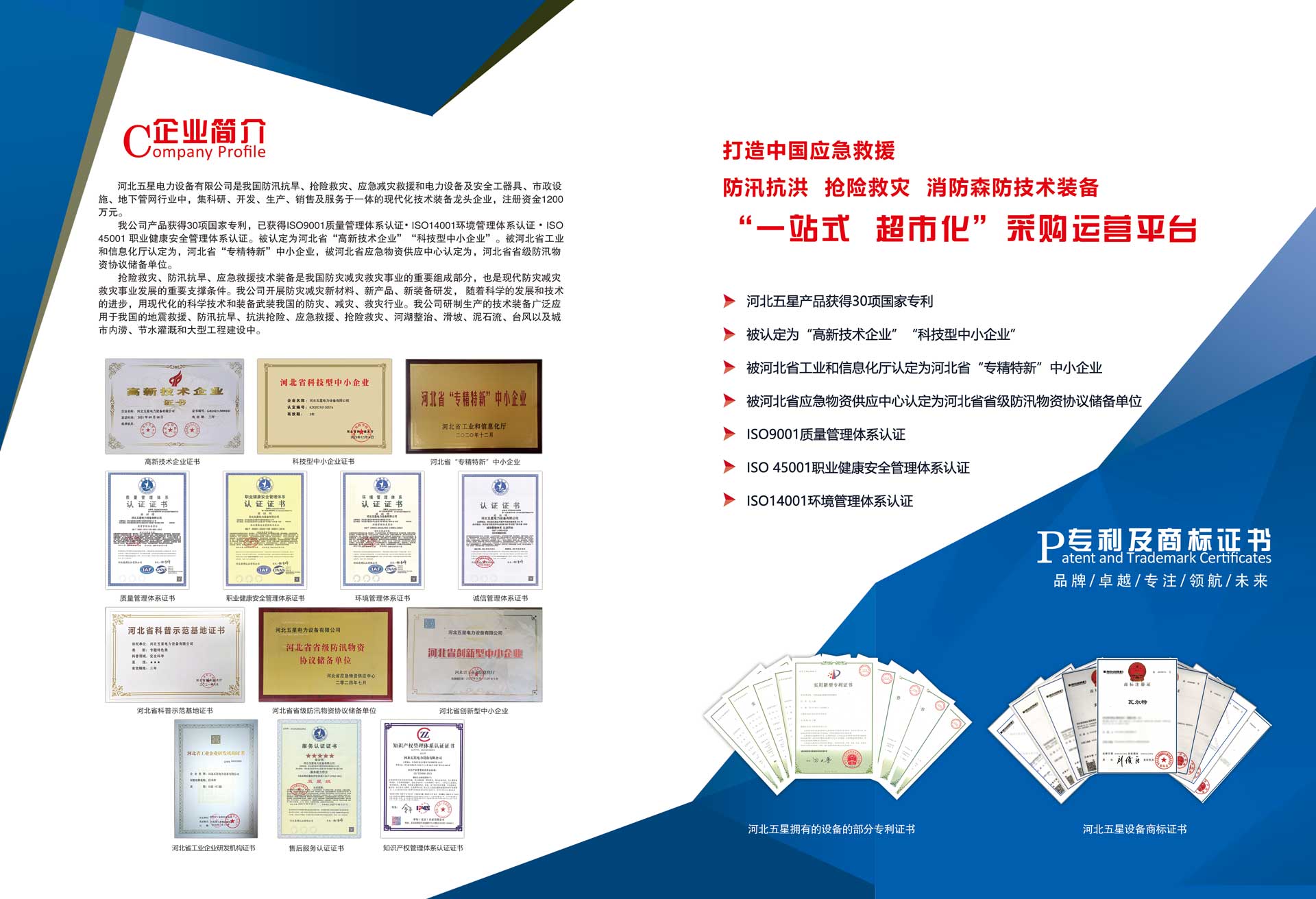 河北五星電力設(shè)備有限公司是我國(guó)防汛抗旱、搶險(xiǎn)救災(zāi)、應(yīng)急減災(zāi)救援和電力設(shè)備及安全工器具、市政設(shè)施、地下管網(wǎng)行業(yè)中,集科研、開發(fā)、生產(chǎn)、銷售及服務(wù)于一體的現(xiàn)代化技術(shù)裝備高新技術(shù)企業(yè),注冊(cè)資金1200萬(wàn)元?! ∥夜井a(chǎn)品已獲得ISO9001質(zhì)量管理體系...